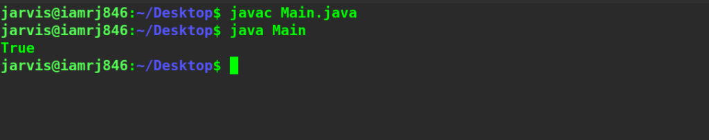 System.out.println("True");