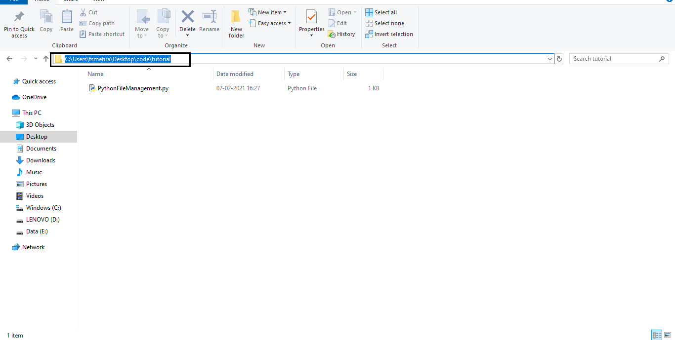 Your Python Program Directory is, C:\Users\tsmehra\Desktop\code\tutorial