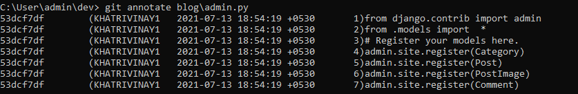 The blame command is similar to the annotate command. It also provides information about the file, such as the last modified date and revision. The only difference between git blame and git annotate is the output format. Git also prefers to use the git blame command instead of git annotate. The only reason why git annotate is still in use is because of the backward compatibility with older repos.