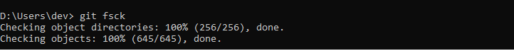 The git fsck command is only used to check the connectivity and validity of the object database (.git/objects directory).