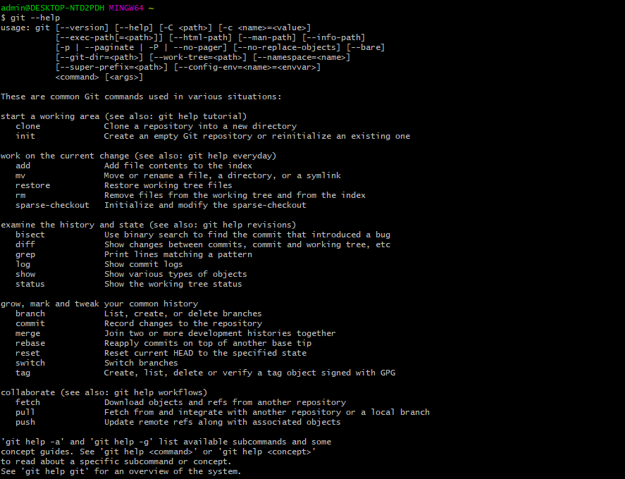 To see the official documentation of a specific command, we can put the command name after –help in the git command.