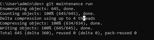 If your git commands are running slow for the repository, you can run the git maintenance command to optimize the repository data and speed up the overall commands.