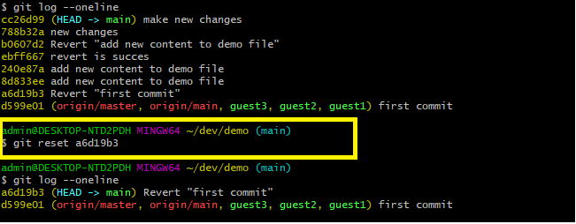 Similar to git revert, the git reset command can undo the already made commits. Using git reset, we can get back to a previous commit git project. The main difference between the git reset command, and the git revert command is that git revert makes a new commit by reverting to the specified old commit. But the git reset command gets back to the specified old commit and deletes all the next commits.