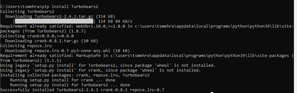 It is a third-party, open-source Python web framework; before we write our first TurboGears web app, we need to install it using the pip install command for our Python environment.