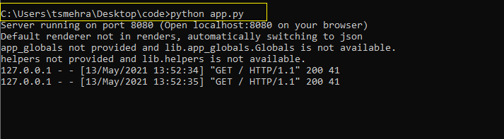 After executing the app.py, it will run a localhost server on port 8080. To see the web app running, open http://localhost:8080/ on your web browser.