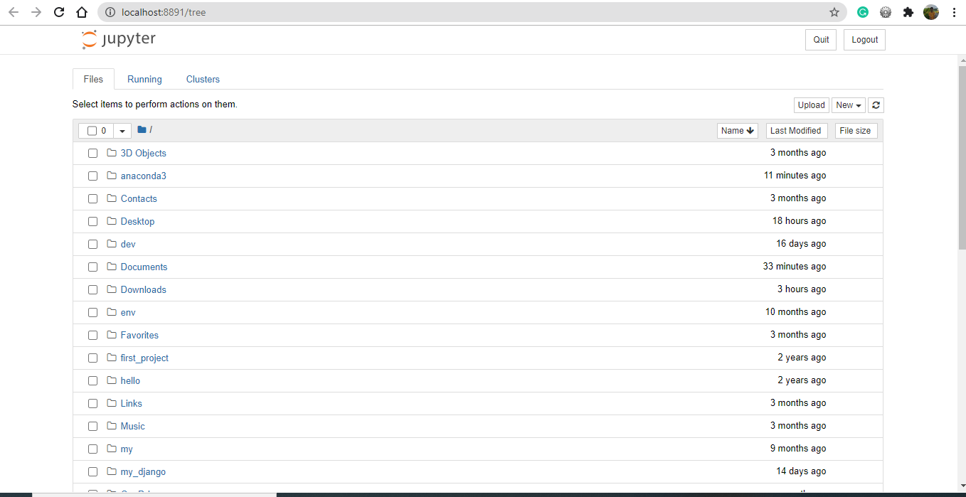 Now Jupyter Notebook is running on your localhost. So now you can surf to the directory where you want to create your project and start coding.