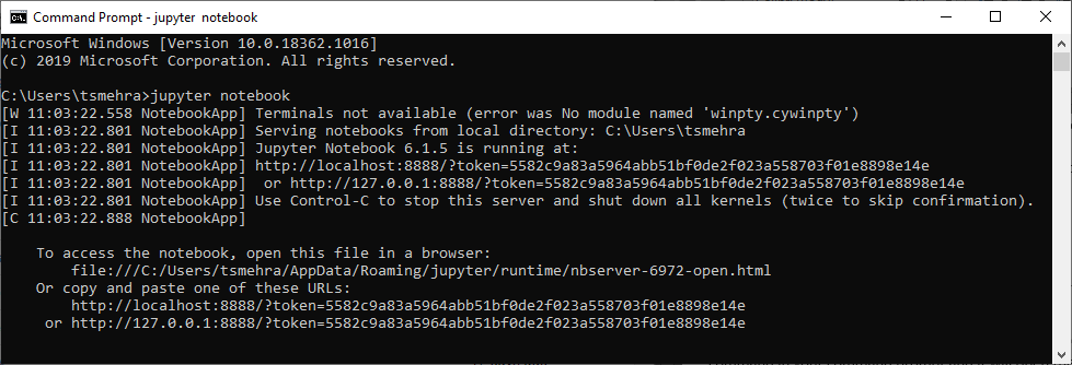 This will open the Jupyter notebook at the command prompt or terminal specified location. The command