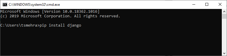 To install any python library and framework on your Windows system, Python needs to be installed. Django is a python framework, so it requires python-support to run its file on a system. If Python and pip are already installed on your windows, you can jump to Step 2. Installing Python on a windows system is very straightforward. You can visit the official website of Python, www.python.org , and download the latest version for your window. To know more about how to install Python on windows, click here . Pip is a python package manager, and it is a command tool that can be used to install and uninstall libraries and frameworks for Python. Pip comes along with Python, so you do not have to install it separately. Even if you are getting some problems with pip and Python, click here to know how to install pip on windows . “Note:” Sometimes the python and pip commands do not work on the windows command prompt because the path variable is not set for the python command. Click here to know how to add path variable for Python .