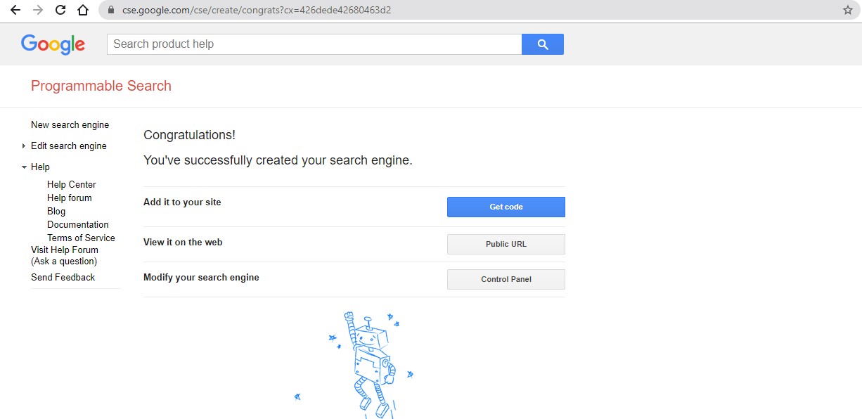 This will create a Custom Search Engine for you. You will get a screen similar to this: