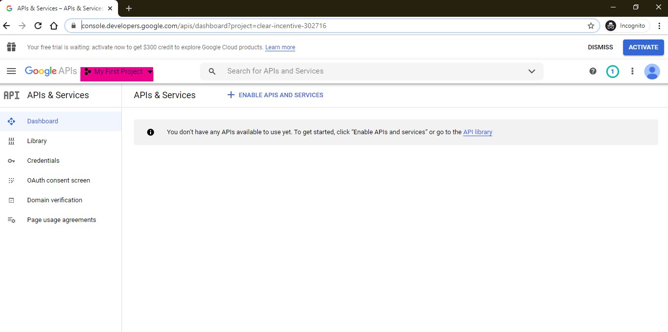 Click on the My First Project, then click on New Project .