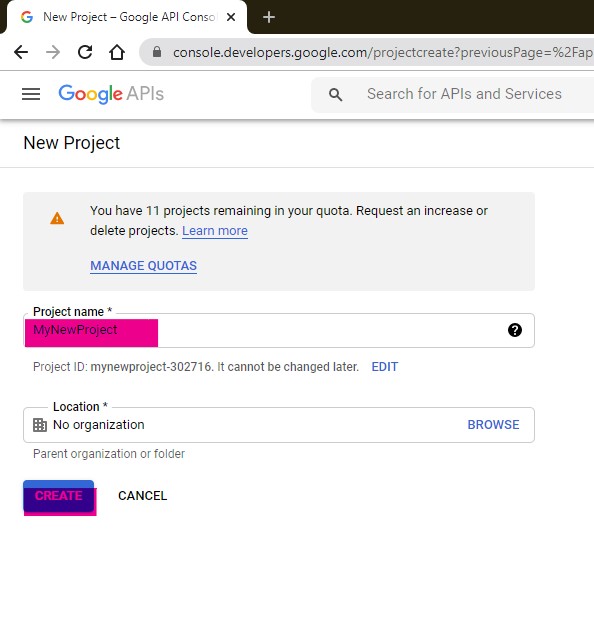 Give a name to your Project. For this tutorial, we are creating a Project with the name, MyNewProject .