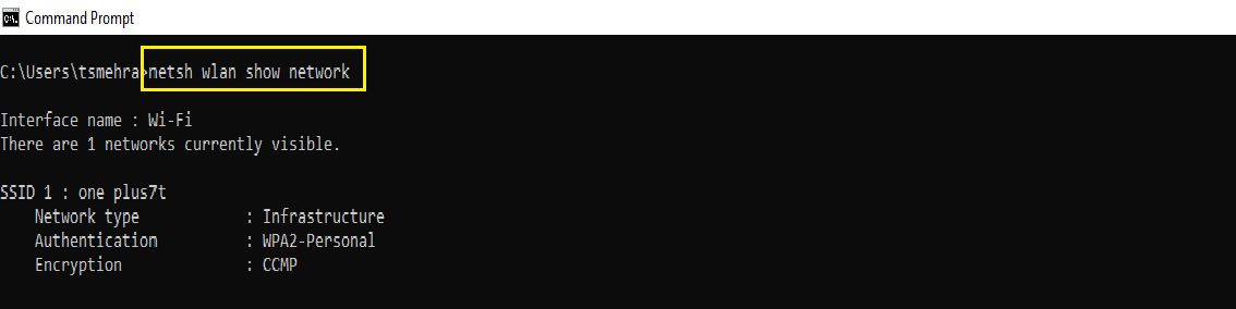 command-line utility and displaying all the available networks. We can also use the same command on our terminal or command prompt to show all the available networks: