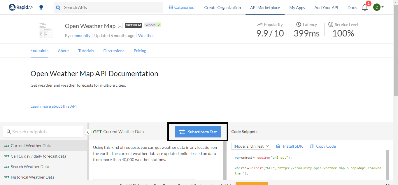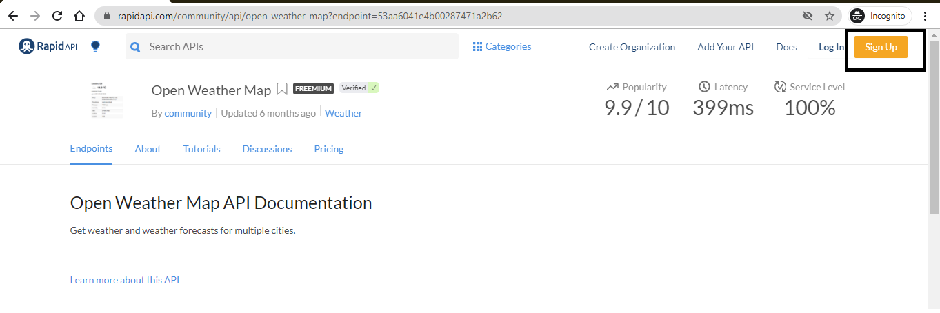 For this tutorial, we will be using the Open Weather Map API, which is one of the best weather APIs available on rapidapi.com.