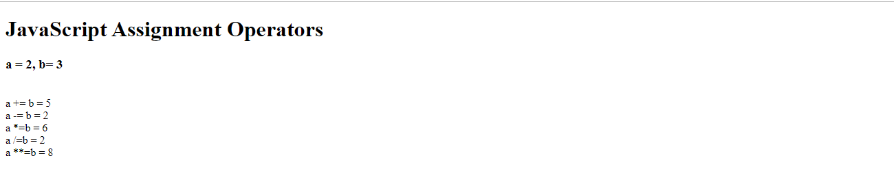document.write("<h1> JavaScript Assignment Operators</h1>");