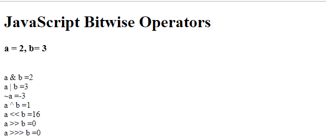 document.write("<h1> JavaScript Bitwise Operators</h1>");