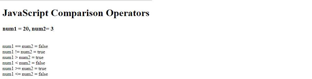 document.write("<h1> JavaScript Comparison Operators</h1>");
