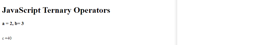 document.write("<h1> JavaScript Ternary Operators</h1>");