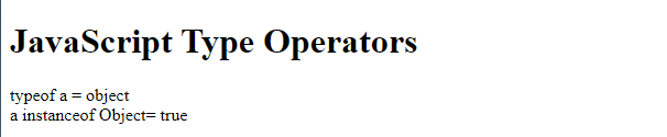 document.write("<h1> JavaScript Type Operators</h1>");