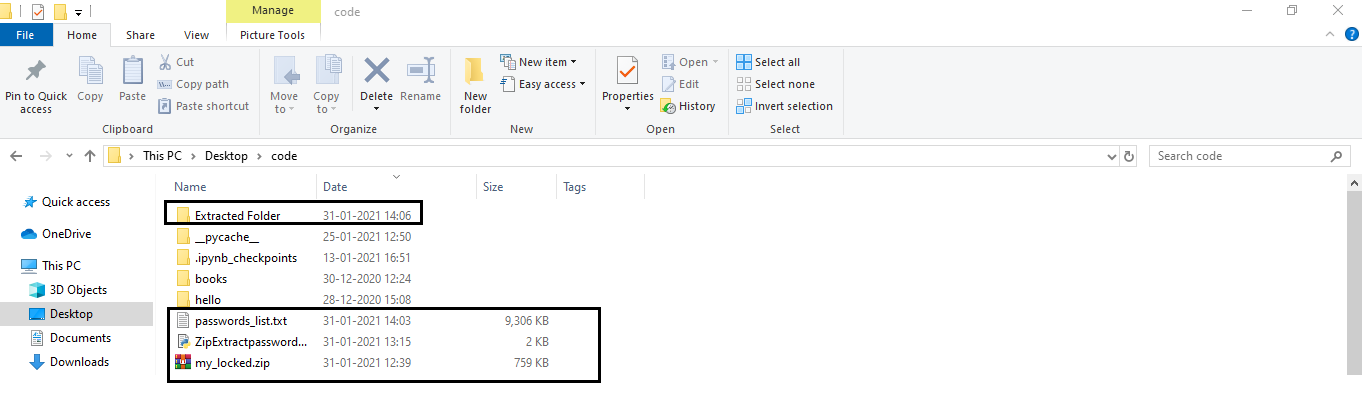 tryblock containsmy_zip_file.extractall(path="Extracted Folder", pwd=password.strip()), and theextractall()function will extract all the files present in themy_locked.zipfile inpath=Extracted Folderifpwdis correct.