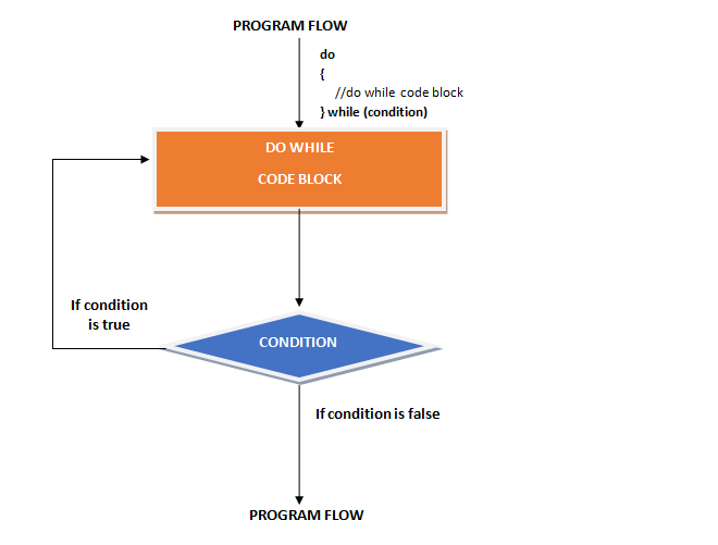 From the above syntax and flow chart, you can see that the code block is before the while condition. This means the the JavaScript interpreter will execute the code first then go for the condition check, because of the top to bottom approach.