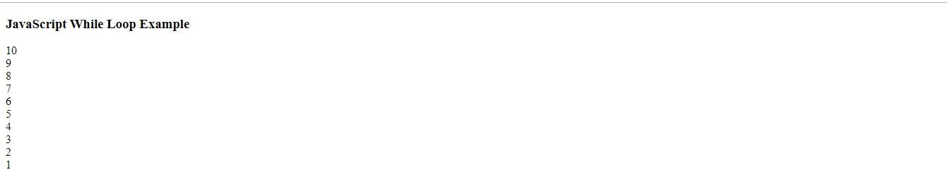 document.write("<h3> JavaScript While Loop Example</h3>");