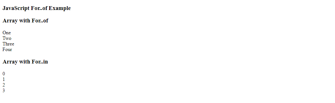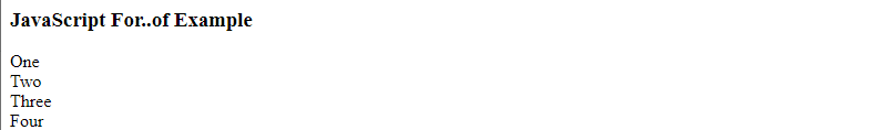 document.write("<h3> JavaScript For..of Example</h3>");