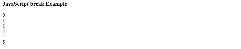 document.write("<h3> JavaScript break Example</h3>");