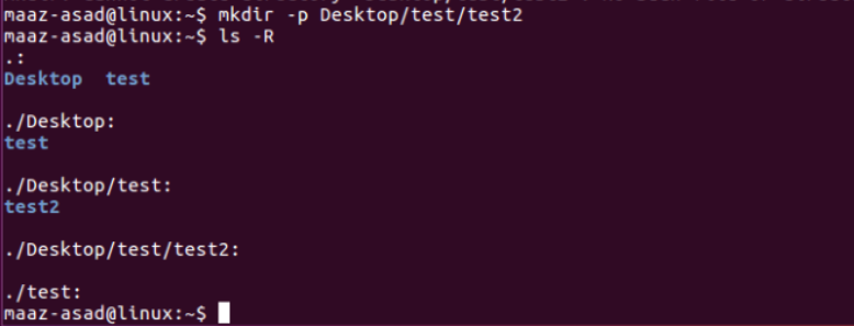 $ mkdir -p Desktop/test/test2