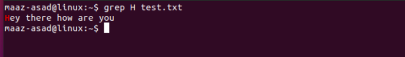 In the above example, we searched for the letter “H” in “test.txt” that got matched at one place.