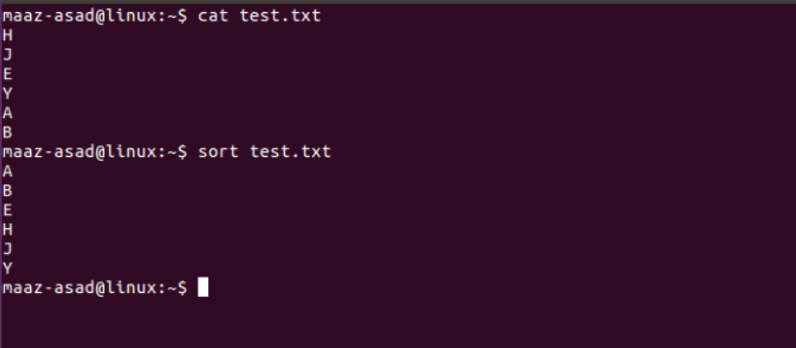 This command sorts the content of the file line by line. For clear understanding, see the example below: