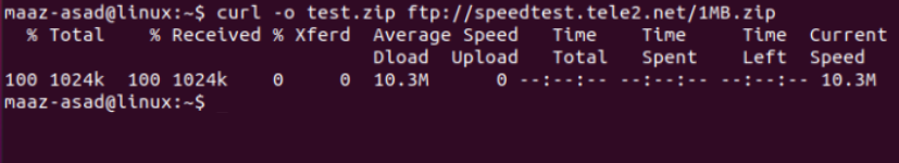 option saves the file with the name given in the next option. Let’s download a sample file in our system using this command: