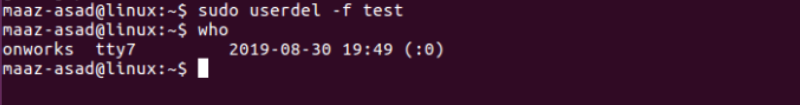 $ sudo userdel -f test