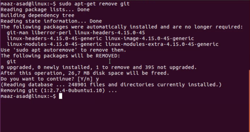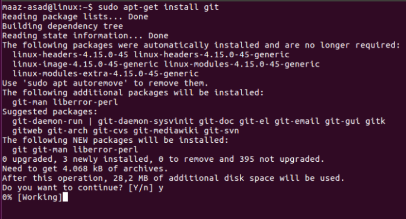 As an example, let’s download git in our system using the above command.