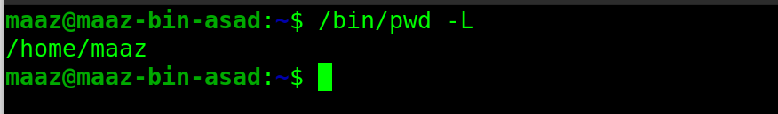 $ pwd -P: #Prints the actual path.