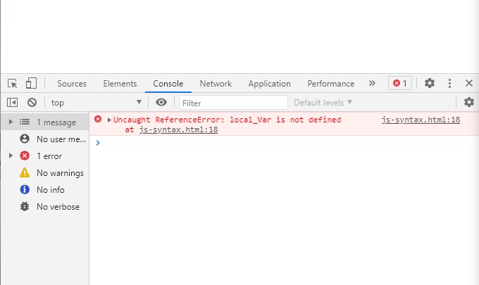 In the above example, we have defined two functions func1() and func2() and both the functions have the same name local variable local_Var but both are independent of each other, because of their scope. Even after calling the function if we try to access their local scope variables it will throw an error of variable not defined. You can check the error by inspecting the page.