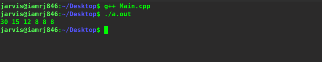 ans[length] = max(ans[length], arr[i]); }: Using this we get the ans[] array as {0, 30, 15, 12, 0, 0, 8}.
