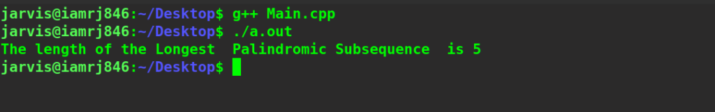 print("The longest palindromic subsequence length is",