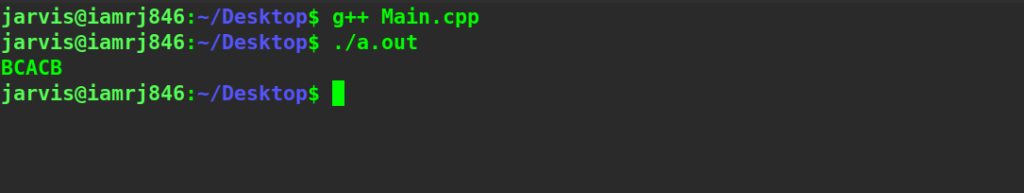 S = "ABBDCACB" # input of the string