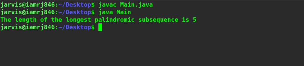 System.out.print("The length of the longest palindromic subsequence is "