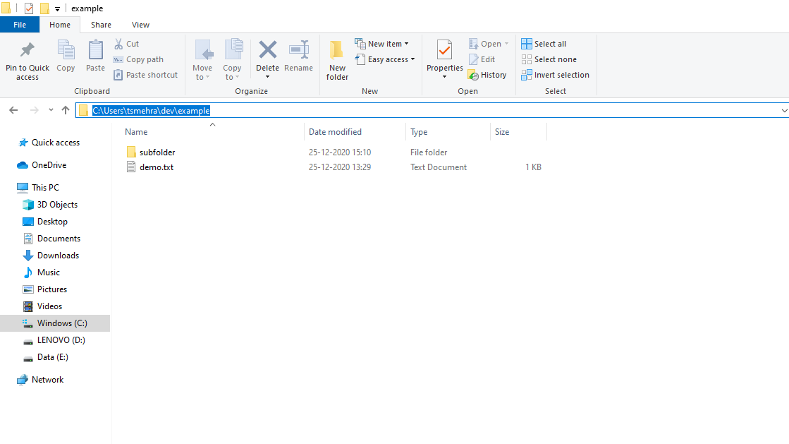 Does file C:\Users\tsmehra\dev\example\demo.txt exists: