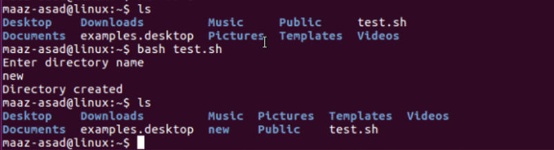 The directory is a set of files and sub-directories in an OS. We can create a new directory in the current working directory by using the mkdir command in Linux . The below script checks if the directory already exists in the present working directory. If not, it creates one with the name entered by the user.