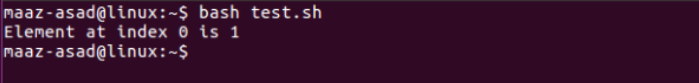 By default, the array indices start from 0 and go up to n-1 , where n is the size of the array. One method of defining the array and then printing one of its elements is demonstrated in the following script: