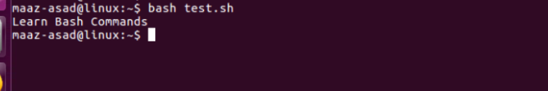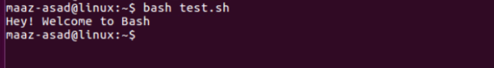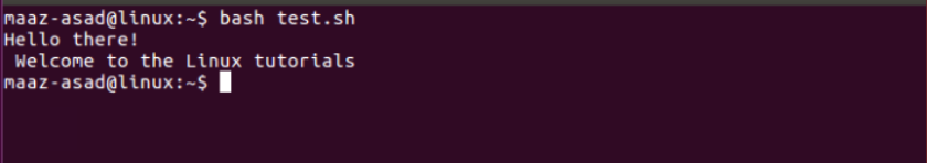 In many cases, you may need to display some message either for the user or for debugging purposes. The ‘ echo ’ command will help you here. It displays a message or any variable as standard output in your terminal. The ‘ #!/bin/bash’ character sequence at the top of the file is called Shebang in UNIX-like systems and executes the file using the bash shell. Write the following code in test.sh with your favorite text editor and run the bash command as shown in the image: