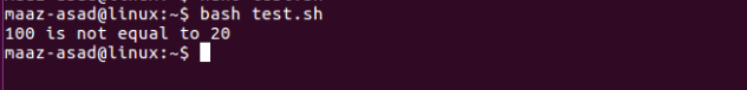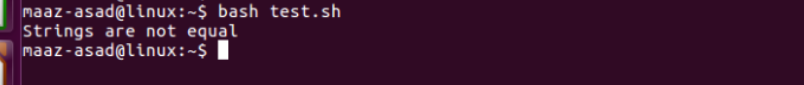 #!/bin/bash #declare strings S1="Hello" S2="Learner" if [ $S1 = $S2 ]; then echo "Strings are equal" else echo "Strings are not equal" fi