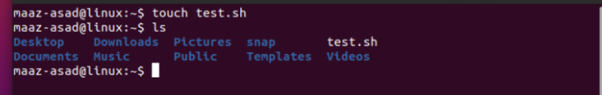 ’ command in Linux. After creating the file, you can list the directories and files in the present working directory to verify that the file was created.