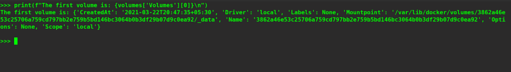 You can see that a dictionary containing the details of the mentioned volume has been printed.