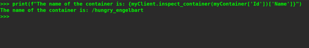 print(f"The name of the container is: {myClient.inspect_container(myContainer['Id'])['Name']}")