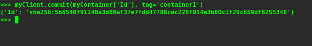 myClient.commit(myContainer['Id'], tag='container1')