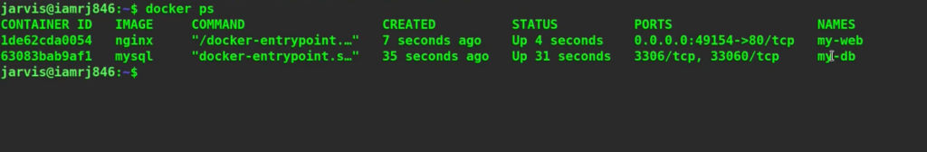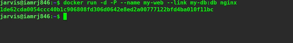 $ docker run -d -P --name my-web --link my-db:db nginx