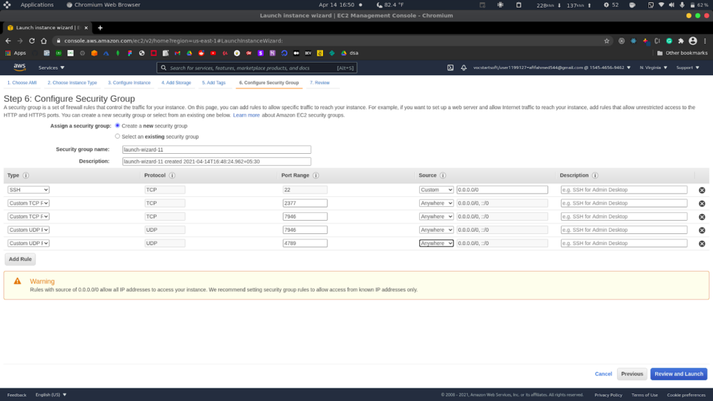 While creating the manager machine, we add these rules. Next, when creating the worker nodes, we use the same security group created for the manager machine.